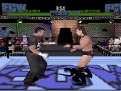 This is where ECW really drops the ball. Instead of offering a similarly streamlined control style, the mechanics are more like a fighting game. Although there are the usual kicks and punches, the grapple moves are executed by inputting a combination of buttons and directions, some rather complex. Each wrestler has their own move list, and though there is some overlap, it's still a lot to try and remember. The amount of time given to input these commands is also pretty small, since the opponent can counter a grapple if the move isn't performed fast enough. Reversals also exist, though I didn't figure out how to do them myself.