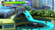 Players control a huge team of heroes. You have control over a primary hero, but each extra hero that you recruit carries out actions that you command. Heroes can execute special moves by consuming battery power. You start out with three, but more are added as you collect batteries in a stage. Collect 50, and you get a new bar added to your meter. This meter allows you to use special combination attacks with your extra heroes. You can dictate which powers you want to use with either the Right Stick, or the Touch Screen on the GamePad.