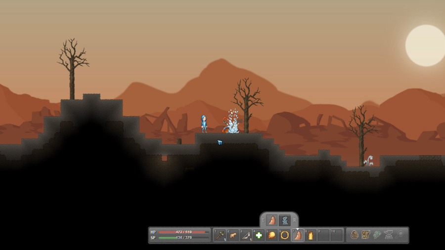 The caves are dark, and you will need torches to light your way, which are created by combining wood with oil. Everything you can make is a combination of one thing with another, and I imagine it gets fairly complicated after a while, but the poor mining controls and sometimes unresponsive world kind of took the crafting spirit out of me.
