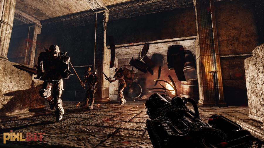 Painkiller is aggressive. Hordes of demonic forces stream forth from every conceivable point of entry, threatening to overwhelm with sheer numbers. Death metal pumps through the speakers, fueling the adrenaline-soaked battles. I cycle through my selection of wicked-looking weapons, choosing the right tool for the task at hand—blowing big holes into my enemies. I have to move around the battlefield quickly, lest I get pushed into a corner and annihilated. Painkiller is all about turning the dial to 11, and it does so with glee. I was bored by level 2.