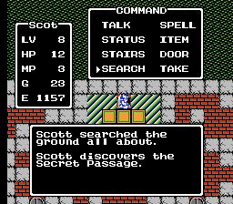 Besides the hero's slow experience progression, the other glaring issue in Dragon Warrior is the unintuitive method of interacting with the environment. Talking to NPCs, climbing stairs, or entering doors each have individual commands that you have to select through the main menu for your character to perform that specific action. It would have been nice if such common actions were mapped to one of the controller's buttons or required only input from the directional pad. While you could argue that Dragon Warrior was released in the early days of JRPGs, other games like Final Fantasy and Zelda II (released in Japan before Dragon Warrior) had proven that such streamlined was not only possible but also worked very well.