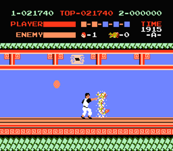 The audio quality was a good attempt at emulating the arcade version. What stands out to me the most are the digitized voices. Each time you kick or punch, Thomas makes a realistic quip. The same occurs when bosses sustain damage as well. They also laugh if they defeat you. Kung Fu is a game that most people might have an easier time remembering what it sounded like more so than how it played.