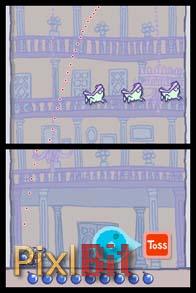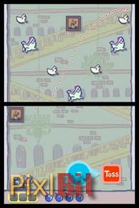 Spotto!’s fantastic controls were one of my favorite aspects of the game. Being so intuitive, it made the game extremely enjoyable to play. For example, when players are aiming to throw a bomb, all they must do is spin an on-screen dial with their stylus and press the toss button in order to throw the bomb when they are satisfied with the trajectory.