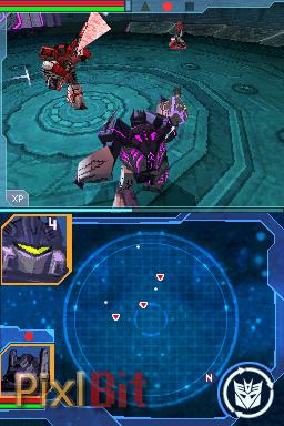Transformers: War for Cybertron on the DS comes in two flavors: one for an Autobot campaign and the other a Decepticon campaign. Each title has players controlling the titular group of Transformers through a completely unique third person shooting, battling, and platforming quest. As players complete missions and collect data disks in the levels, they unlock new Transformers to play with as well as stat upgrades to improve their current bots.