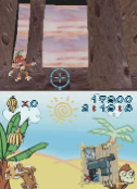 Though the actual game concept is bland and boring, the control scheme is even worse. Players must aim by moving the stylus around the bottom screen, which in turn moves a reticule on the center of the upper screen. In order to shoot, players must click the L or R button, which is awkward since you must click it rapidly to defeat the enemies (monkeys) on-screen. Rather than pushing a button, players should've been able to tap the screen. Unfortunately there are no control options to allow players to choose a different set-up.