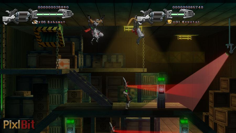 Uprising is technically the fifth game in the Contra series, although it is being more heavily marketed as the second game in the Hard Corps series. It is the prequel to Contra: Hard Corps for the Sega Genesis. Starting the game you are treated to a nice anime cut scene introducing us to four characters (Bahamut, Krystal, Harley Daniels and Sayuri) and how they got started on their path of carnage. Based on the cutscenes we see that Bahumut is a defector who couldn’t watch his comrades gun down any more civilians (or he thought they weren’t dressed as cool as him), Krystal is apparently one of the civilians who was forced to fight to save her life, Harley likes riding motorcycles, and Sayuri likes to cut things. They are fighting an evil emperor and his oddly attired army... and that's essentially the story I was able to piece together - hopefully that’s all the motivation you need.
