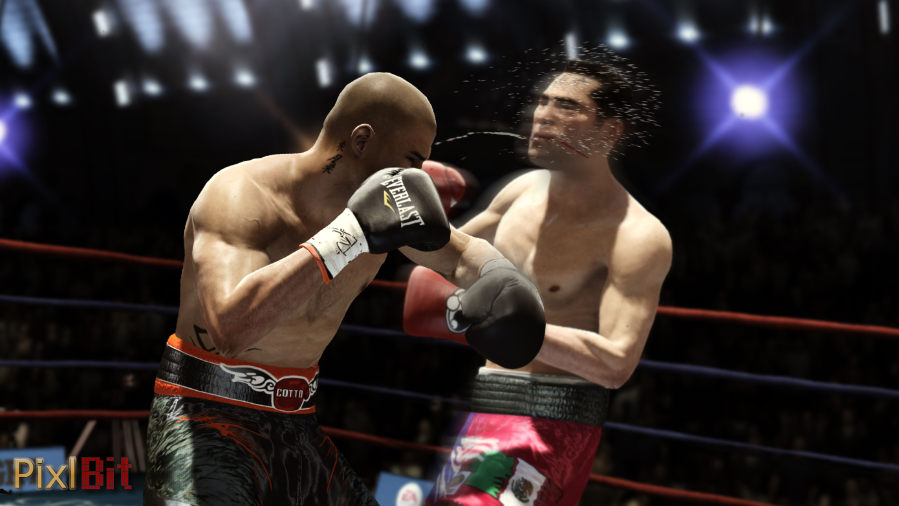 The presentation of the Fight Night Champion really catches your eye right from the start. When you punch someone in the face, you can actually see the outline of your glove on your opponents face. As the hand retracts from the face you can see a ripple effect from the force behind the punch. This definitely became an awesome thing to watch when showing punches in slow motion. Bleeding has also improved from past entries in the series. When a boxer is punched and begins to bleed, you can see the cuts, gashes, and scratches form and worsen throughout the match. The blood can even begin to get on the boxing gloves, the boxer’s pants, and will eventually be all over the ring. This brings realism to forefront, making it feel far more authentic when playing or spectating.
