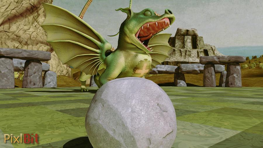 The boulder controls are similar to something like KatamariDamacy or Super Monkey Ball; at slow speeds you can control it nimbly and with minimal effort. At higher speeds however all of that momentum makes turning a truly difficult task so you better hope you are going in the right direction. Your boulder has a health gauge and along the way you will encounter multiple obstacles to either navigate around or crash through. Each collision costs you health and shrinks your rock, but at the same time gives you money for your own building phase or for upgrades to your boulder, like wings for higher jumps or spikes to cause more damage.