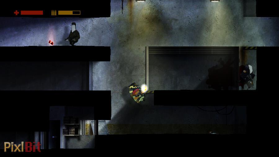 If you happen to have a friend that is also interested in bird on bird violence you’ll be happy to know that there is a rather robust co-op mode. Rather than tacking on a generic companion to Hard Boiled’s single player experience, you’ll be taking on the role of one of two smaller birds, each with a weapon layout unique to them. Some of the levels are recycled, but you’ll traverse them in new and interesting ways – the birds can stand on each other to reach higher ledges, there are multiple switches that will need to be flipped to open doors, etc…