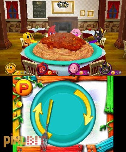 Pac-Man Party 3D is somewhat like a board game where the goal is to collect a predetermined number of cookies. Its default number is set to 12,000, although you can play for many more cookies if you change the settings before starting a game in Party mode. You can play for more than 12,000 cookies (you just won’t want to). If you play up to 75,000 cookies, the family fun will last a couple of hours (but it'll be torture for older players). At the beginning of each round, one of four micro-games will decide the number of moves each player will take . Dropping a Plinko ball, shooting balloons, stopping a slot machine or throwing darts actually allow players to choose their own destinies with a modest amount of skill. Each player accumulates cookies by landing on spaces and building castles, or by taking castles away from players who already own them. Landing on vacant spaces will build a castle for the player.