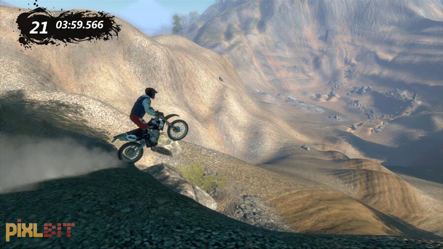 Certainly, I expected the hard tracks to be, uh, hard, but that doesn’t mean they should stop being fun or stop instilling a deep desire to get better. After you learn the final set of skills involving short hops and leveraging your bike over short walls, it’s almost as though the remaining tracks focus on these top-tier tricks and forget the long jumps and speedy treks through the dirt that were so exhilarating. Every track in this final section of the game seems to be designed as one short bunny hop onto a box or rock after another. There’s just enough variation between each obstacle to keep it too difficult and no fun.