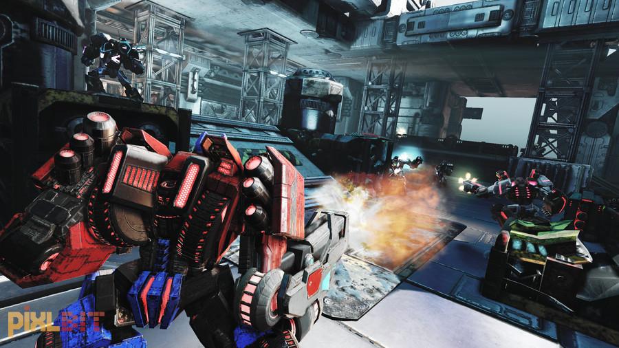 The story unfolds in a much different way than War for Cybertron. Instead of choosing to play as the Autobots or Decepticons in independent campaigns, the twelve chapters of the game are broken up with transitions between the two factions, sometimes mid-level. Each chapter focuses on a different character, many that are completely new to this take on the classic Transformers story.