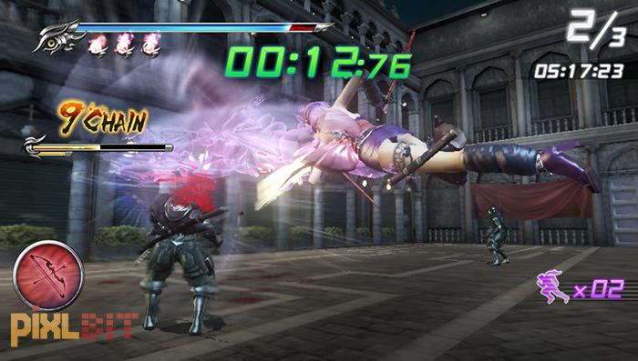 New for the Vita are additional costumes, a "Hero Mode" (easy) difficulty setting, a "Ninja Race" time attack mode, and touchscreen controls.