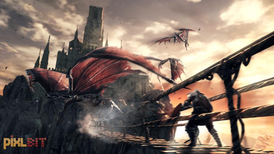 No Souls game is complete without incredible atmosphere either. Though it took a significant amount of time to truly awe me, I’ll never forget the simultaneous feelings of dread and joy as I first gazed upon Drangleic Castle standing out in the open, illuminated by moonlight and fronted by a bridge laden with fire light. Nor will I ever forget the foreboding feeling as dozens of dragons flew above and below me as I slowly made my way through the Dragon Aerie. Atmosphere has always been key in the Souls universe, and although it feels like it peaks a bit later than normal, Dark Souls II is simply dripping with ambience. I still walk into well-lit areas with meager baby steps and a shield clutched tightly to my chest.