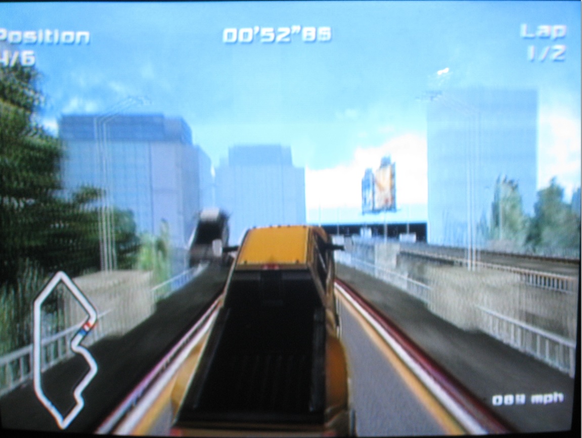 The real problem is that it's animated by the spirit of “un-thought.” The most basic aspects of a racing game, and the most basic conveniences that one would expect, aren't implemented poorly, they simply do not exist. They either weren't thought up, or a corporate policy one can only describe as Absolute Minimum At All Times (AMAAT), was strictly enforced.